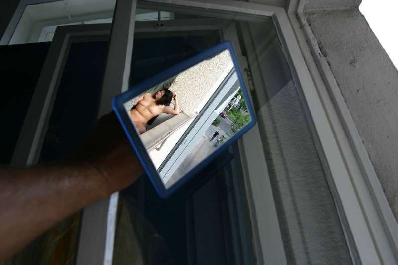 Ein junges Paar hat Sex am Balkon seiner Wohnung, und die Kamera des Nachbarn ist live dabei!