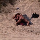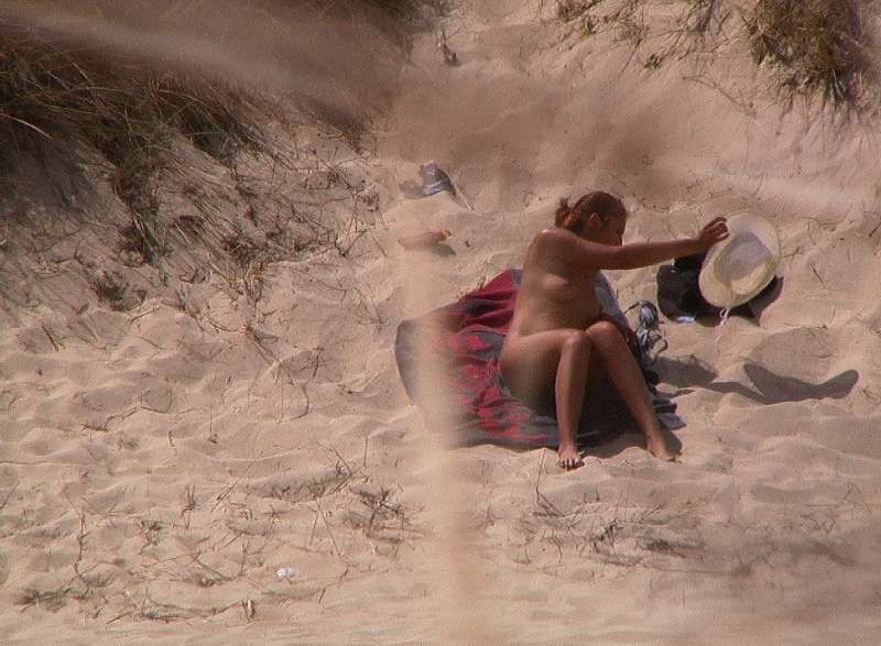 Eine Single-Frau und ein Pärchen beim nackten Sonnenbaden und beim Strand-Quickie heimlich beobachtet.
